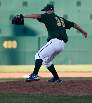 IMPRESSIVE: I have been really impressed by Spokane third-baseman Tommy Mendonca (pictured right) out of Fresno State…the Rangers second-round pick this year was the 2008 College World Series MVP and the 2009 WAC Player of the Year…it isn’t his bat (he hit 27 HR in college this spring and has seven with the Indians this summer) that has been most impressive, it has been his defense – he has made two or three big-league plays and has a cannon for an arm.