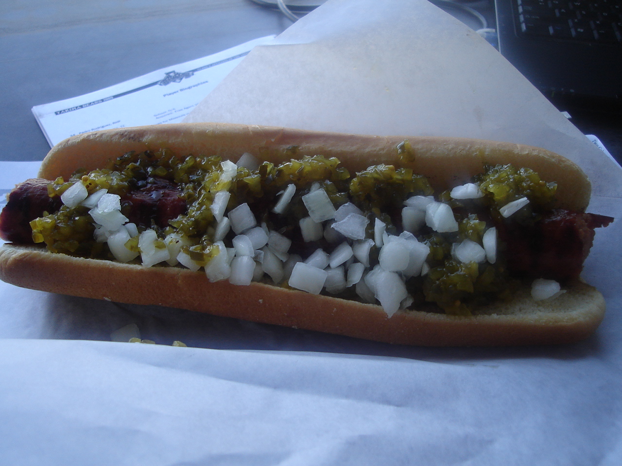 LET’S TALK COUNTY STADIUM: The ball park in Yakima is one of the more unique experiences in the Northwest League – starting with the behemoth of a hot dog (pictured right), which reminds me of the old “Real Men of Genius” Bud Light commercials about the creation of the foot-long hot dog – with the Yakima dog measuring 14 inches of John Morrell beef frank. The staff (pictured below) at the barbeque pit at County Stadium has been amazing over the years – always taking great care of the visiting broadcasters (especially me) and also took great care of my family when they came to town the last time through