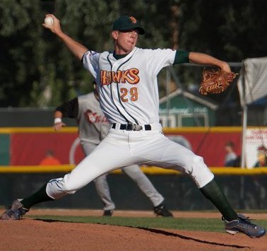 Was is more disheartening is the Hawks squandered a chance to pull two games under .500 and pull five games behind first-place Tri-City. Robert Whitenack (pictured left) did his job, recording his best performance of the season, going six innings of three-hit ball, allowing just one run and one walk.