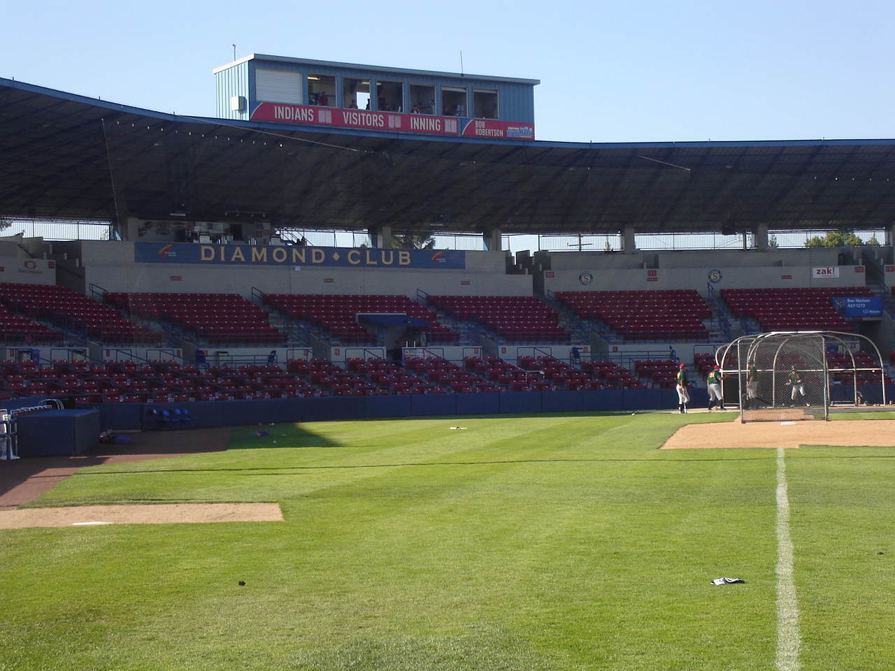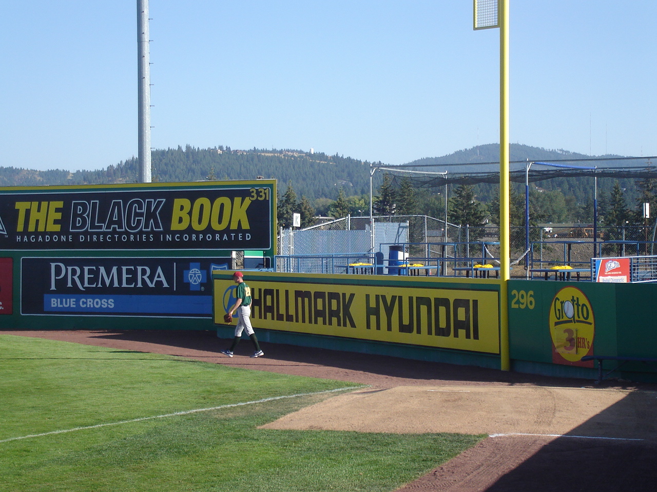 THE GROTTO: I always thought that the Hawks should move the Hawks Nest out near the scoreboard and make it an eating area where you could get a home run ball. Spokane has done that with their right field pavilion, the Grotto (pictured right). Fans can sit at picnic benches, kids can play in a kids area, and it is right on top of the action – as the view is outstanding. As you can see in the picture, where “The Black Book” sign is, will be the Indians version of the Hawks Nest, a full restaurant with views of the field – lowering the wall to just six feet, making it even more of a home run hitters paradise.