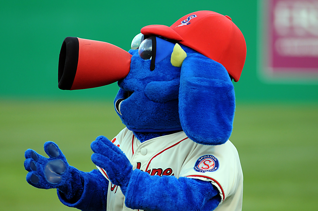 With the Spokane Indians drawing more fans than any other Northwest League franchise again this year, the throngs of fans are entertained each night by one of the more unique mascots in the NWL – Otto (pictured left, courtesy of the Spokane Indians), the Spokaneasaurus. Yes, a Spokaneasaurus – the one and only Spokaneasaurus in the world. Otto is very animated throughout the game and keeps the crowd entertained, along with one of the loudest on-field promoters in the league – Jaime has a great voice.