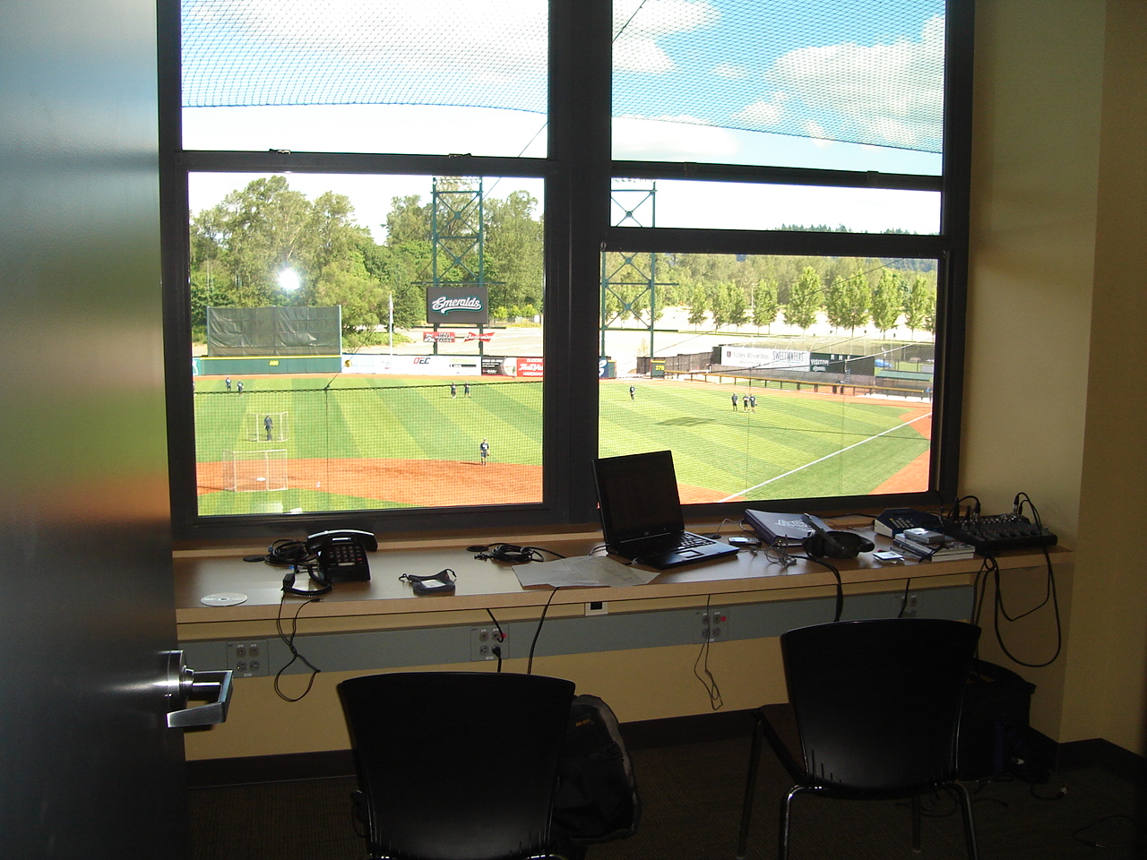 Two quick things tonight after the Hawks 5-4 victory over the Eugene Emeralds on completely different ends of the spectrum. For the fans wanting more P.K. Park action, here is a link for a video tour of the P.K. Park press box, including a look at my radio booth …it is HUGE (and I love the ability to control the temperature, either with the windows open or as I did tonight, turning the heater on.