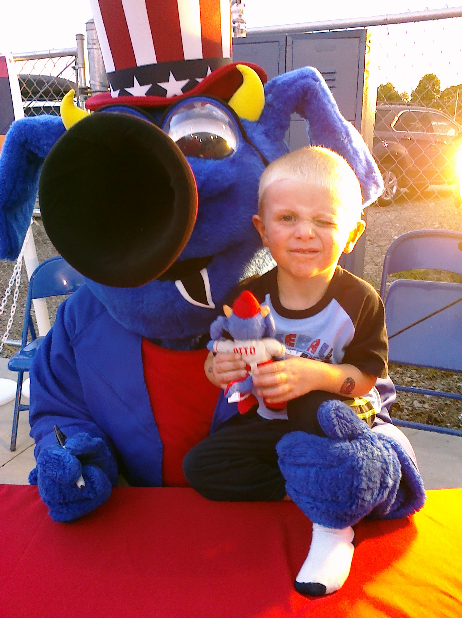 Once at Avista Stadium, I had the opportunity to spend time with my great friend and mentor, Hall of Fame broadcaster, Bob Robertson – the Voice of the Spokane Indians and longtime radio voice of Washington State football. While I was in the booth, PJ had the opportunity to check out the scene at the stadium – meeting the Indians mascot, Otto – the world’s only Spokaneasaurus (pictured with PJ below).