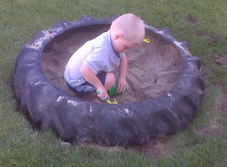 WHAT TO DO ON AN OFF-DAY: When you work two jobs during the summer (most know that I am also the Sports Information Director at The College of Idaho), it is rare that I get an off day, even when the Hawks have an off day. Today was the exception – although I tackled a challenge in the backyard, creating a sandbox for PJ out of a free tractor tire from one of the Hawks major sponsors – Les Schwab. I still need a bit more sand, but he absolutely loved it.