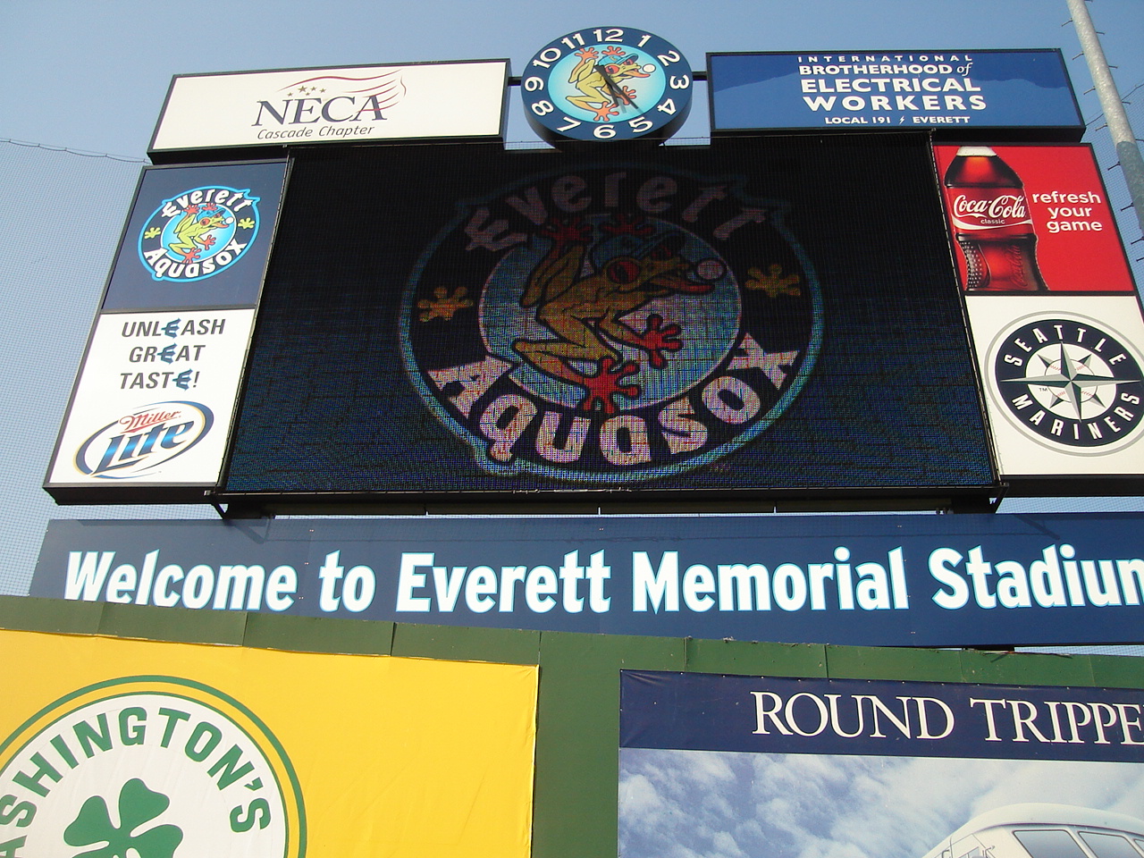 Everett Memorial Stadium became the home of the Everett Giants back in the mid-1980s and was affiliated with San Francisco until the Mariners moved down from Bellingham in 1995 – resulting in the Aquasox and the closest affiliated team with their parent club in the NWL. The park has a seating capacity of around 4,100 – which, depending on the weather, will be pushed to the limit on Saturday night for their annual Frogstock event, where the team will be wearing tie-dyed uniforms (which are pretty sweet).