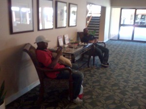 ROOM PLEASE: When we arrived at the Red Lion Columbia Center, most people got their rooms immediately, however, others weren’t so lucky. Charles Thomas and Kyler Burke, Paul Hoilman and Kenny Socorro, Blair Springfield and Reggie Golden, among others were sitting in the lobby of the hotel over 90 minute after the rest of the team checked in – still waiting for their rooms to be ready.
