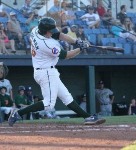 HOME RUN WATCH: Hoilman crushed his league-leading 12th longball of the season on Thursday night, a massive shot over the scoreboard in left-center – the first such home run at Memorial Stadium since Chris Dominguez of Salem-Keizer launched a ball in 2009…it brought back memories of a Ryan Harvey blast in 2004, a bomb that some say was the longest homer in the history of the park. He is now one of just 12 players in franchise history to club 12-or-more HR’s in a season…next on this list is Brian Dopirak (’03), Kevin Collins (’02), Jeff Mace (’88), and Jason Dewey (’97), who each hit 13…Stephen McQuail of Vancouver is second in the loop with 10 homers, with Yakima’s Justin Hilt third with nine.
