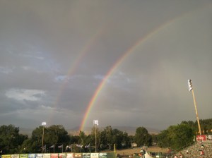 Thankfully, the third time was the charm – or the luckily charm of the rainbows that formed over the stadium midway through the game.