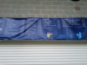 Food options are vast in Everett, though the prices are definitely more that what you find in Boise – as a Miller Lite will set you back $7.00 (compared to $5.50 in Spokane and $5.00 in Boise), but they have things like chili and clam chowder bread bowls and the biggest bags of popcorn in the Northwest League. The condiment bar is outstanding – and I feel that Everett is No. 1 in that category – with shredded lettuce, tomatoes, sauerkraut, relish, jalapenos, and BBQ sauce, to go along with the typical mustard and ketchup (Salem-Keizer is still the lone yard that has pickles for the fans).